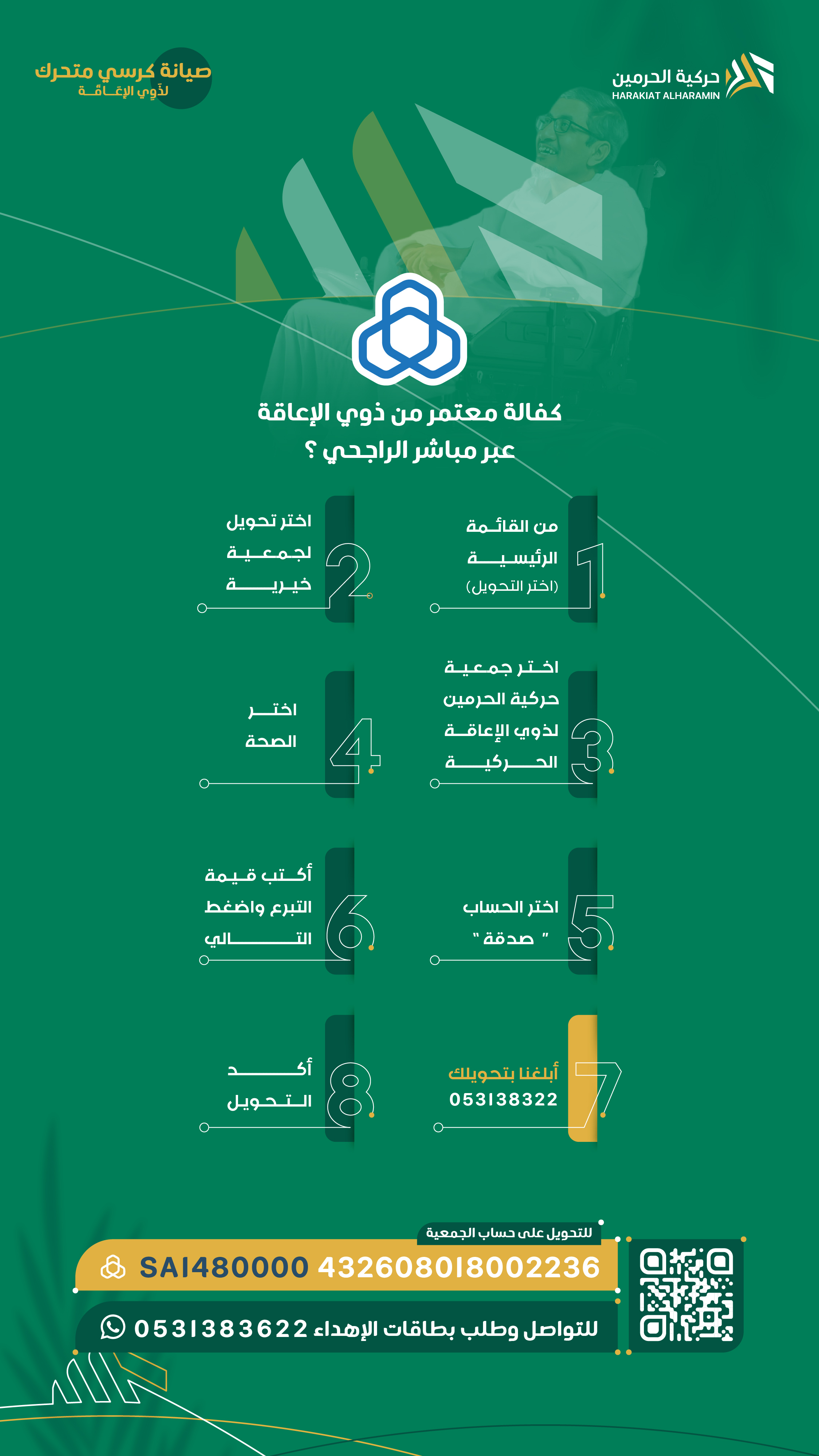 6000 إنسان من ذوي الاحتياجات الخاصة قد تتعطل عرباتهم أثناء زيارة الحرمين بسبب مشاكل بسيطة تُعيق حركتهم. بمساعدتك، سنوفر ورشة صيانة فورية في الحرمين، مجهزة بأحدث الأدوات وفريق متخصص لصيانة العربات اليدوية والكهربائية. ساهم الآن وسهل حركتهم.
